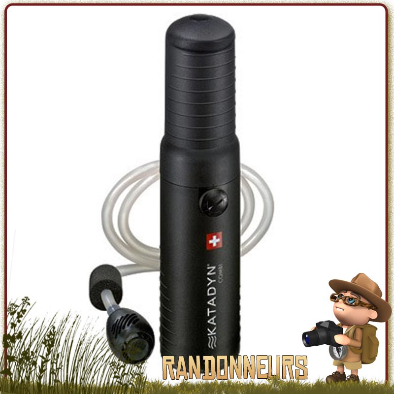 Le filtre Combi de Katadyn combine une cartouche filtre céramique à imprégnation argent et un filtre charbon actif pour réduire les substances chimiques.