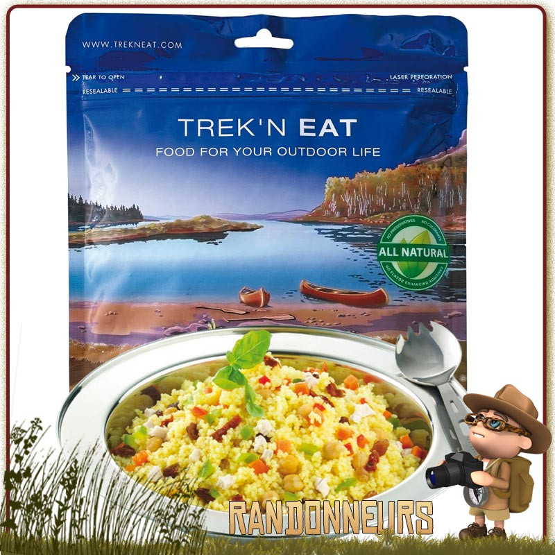 Un bon repas lyophilisé à base de viande simple pour la préparation de vos petits plats en randonnée... Toute l'énergie nécessaire "COUSCOUS AU POULET ET AUX LÉGUMES TREK'N EAT" lyophilisé Trek-n Eat vite préparé