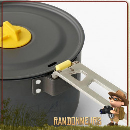 Le Frontier Pot Sea To Summit en aluminium hard anodisé propose une poignée rabattable avec système de fixation Click-Safe qui assure le maintien de la poignée une fois ouverte