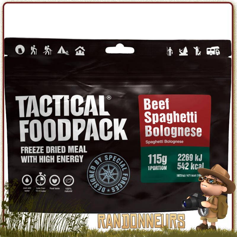 Sans colorant, ni conservateur, les repas lyophilisés Tactical Foodpack sont préparés à partir d'ingrédients naturels, avec un dosage équilibré des aliments, pour faire bénéficier au randonneur, d'une ration alimentaire saine et énergétique.